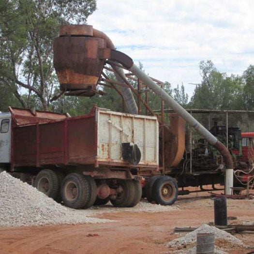 The dirt is extracted by a āblowerā which in reality is more akin to a giant vacuum cleaner. When the truck is full, it is taken to the āagitatorā- a modified cement mixer- where the extracted dirt is washed for the duration of the mining week. Up to 10 truckloads of dirt go into each batch of wash, which wears down and accumulates into a concentrate by the end of the week.