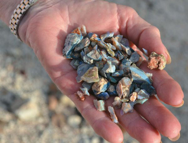 We prospect for opal with a 9 inch auger drill. When promising material is discovered we drill a 3 foot diameter shaft down to a depth that bottoms on the opal bearing level. When, what appears to be payable material is found, we lower a mechanical digger down the shaft.